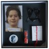 Primer nivel: Postal lenticular, doble lazo negro, botella doble, moneda de fotografía, Información sobre las artistas.